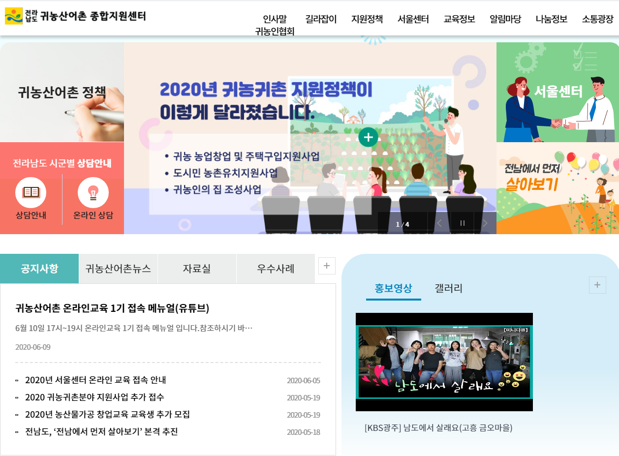전남도청 귀농산어촌 종합지원센터에서는 귀농을 꿈꾸는 사람들을 위해서 여러 가지 지원 정책을 소개하고 또 초보자들을 위해서 각종 교육도 준비되어 있습니다. 온라인 교육도 있는 점이 참 마음에 드는 부분입니다. 이러한 서비스는 귀농에는 관심이 있지만 전남도청과 관련이 없는 사람들한테도 도움이 될 거 같습니다.