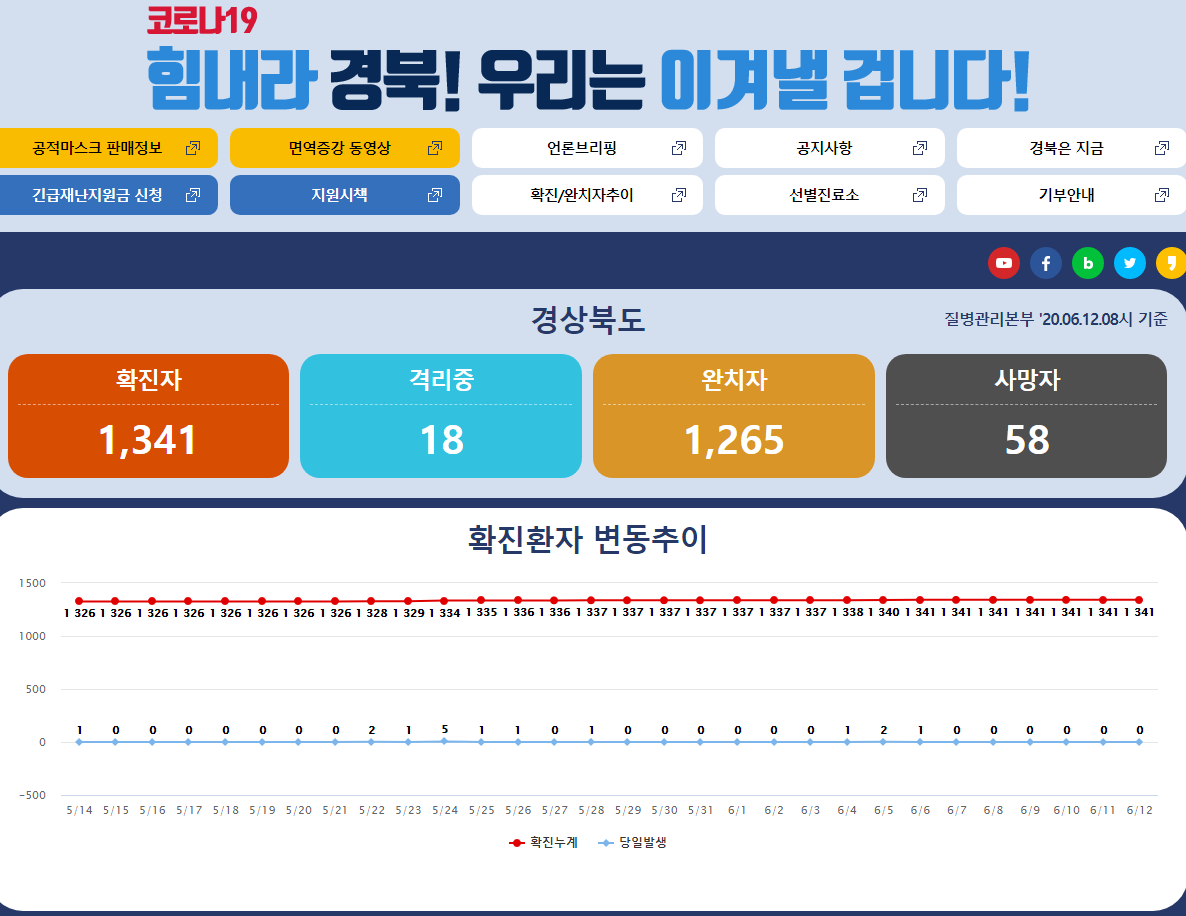 최근 코로나가 잠잠해지면서 길거리에 사람들이 많이 나왔지만 다시 한번 확진자가 두 자릿수로 늘어나면서 재 확산을 우려하는 목소리가 여기저기 들리고 있습니다. 유럽증시와 미국 증시는 경제전망과 코로나 2파 우려로 급락 마감을 했는데요, 금일 한국 증시도 큰 폭으로 하락을 하고 있습니다. 이에 여기저기서 마스크를 사들이려는 사람들과 지방자치단체에서 운영하는 사이트를 찾는 사람들이 다시 늘어났습니다. 이번 포스팅은 경상북 도청 홈페이지를 살펴보고 바로가기 링크를 본문에 추가하겠습니다.