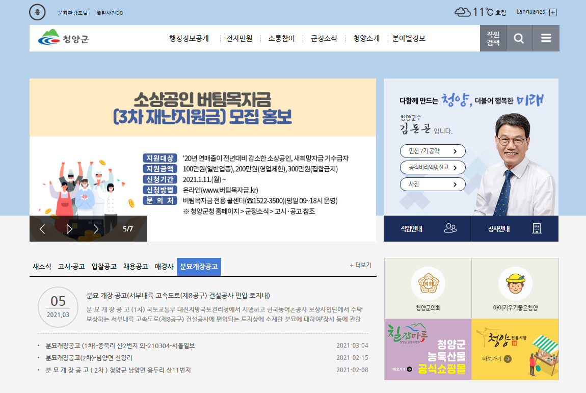 각 지역에서 운영하는 홈페이지에 들어가면 알짜 정보를 얻을 수 있습니다. 하지만 이러한 것들을 모르고 지나가는 경우가 태반인데요, 저 역시도 이번 코로나 19로 인해서 긴급재난지원금을 신청하거나 확진자 동선을 파악하기 위해서 지역 홈페이지를 둘러보던 중 코로나 관련 지원 외 받을 수 있는 혜택이 많은 것을 알았습니다. 오늘 이 시간에는 청양군의 유용한 정보를 찾는 방법을 알려드리겠습니다. 해당 사이트 링크는 본문에 첨부하니 이점 참고하시면 될 거 같습니다.