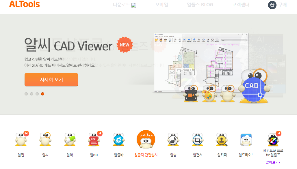 그 다음으로 소개해드릴 곳은 대한민국 기업인 이스트소프트에서 제공하는 알 PDF입니다. ESTsoft의 각종 소프트웨어를 다운로드할 수 있는 알툴즈(https://www.altools.co.kr/Main/Default.aspx)로 가시면 메인 화면에 제품 별로 아이콘이 있는데요, '알PDF'를 선택하시면 해당 설치 파일을 PC에 저장할 수 있습니다.