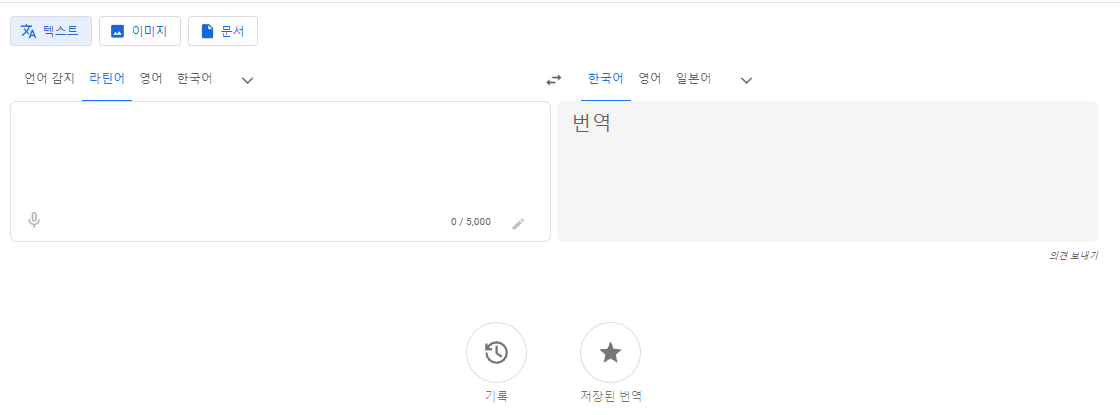 - 왼쪽 입력란에 번역할 문장을 입력하고, 오른쪽에는 번역될 언어로 라틴어 또는 한국어를 선택합니다.