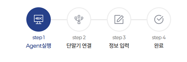 단말기 등록 페이지(https://www.hipass.co.kr/eHiPass/obuRegist.do)에 접속해 ex Agent 프로그램을 다운로드하고 실행합니다. 실행이 정상적으로 되면 컴퓨터 오른쪽 하단 숨겨진 아이콘 영역에 Agent가 표시됩니다.
